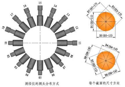 双测头分布及每个截面的尺寸方向